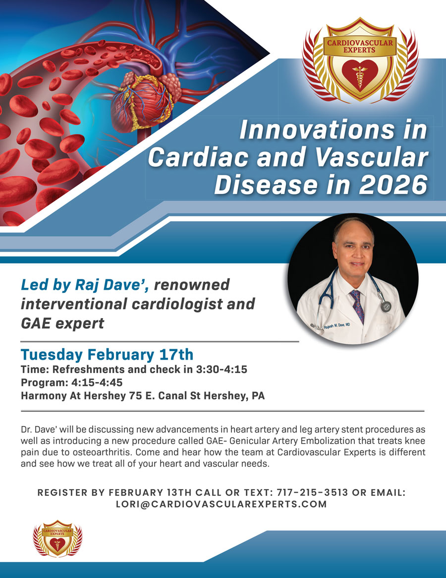 Led by Raj Dave’, renowned interventional cardiologist and GAE expert Tuesday February 17th Time: Refreshments and check in 3:30-4:15 Program: 4:15-4:45 Harmony At Hershey 75 E. Canal St Hershey, PALeer Más